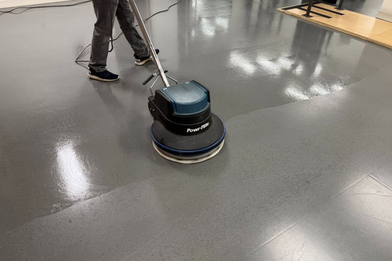 Scrubbing: We tackle stuck-on grime, especially in high-traffic areas. Ideal for prepping floors before sealing or waxing.